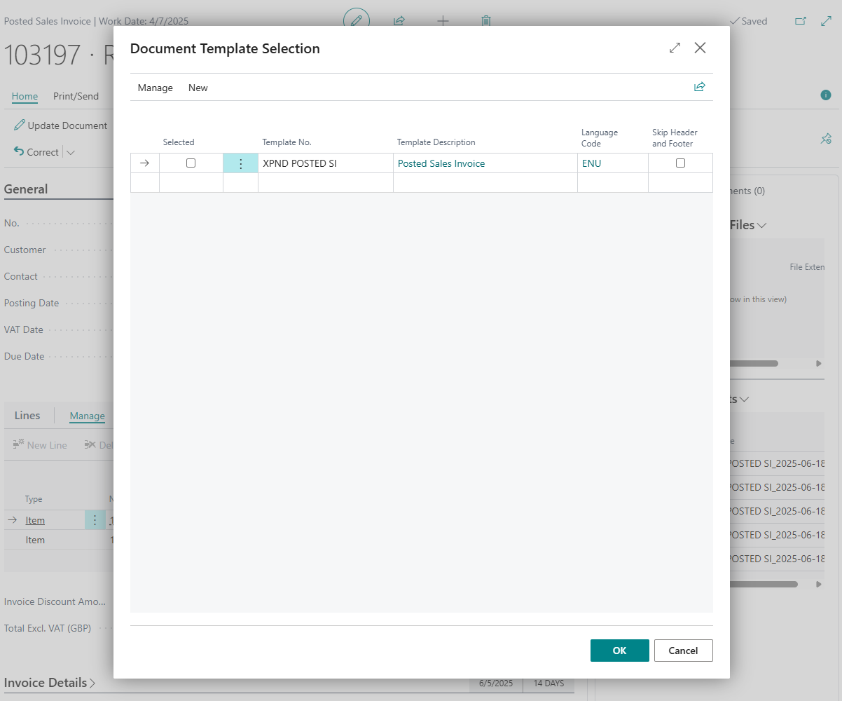 However, you can extend the integration with Business Central if needed. Documents can always be generated from the document template card (where the template was created), which may be useful, for example, if the actions for generating documents are not available on a specific page or if the document is not directly related to a Business Central document or entity.