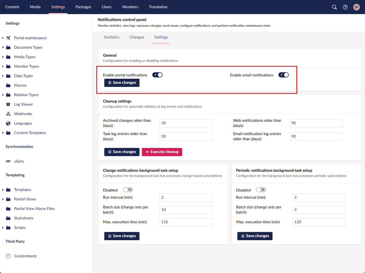 Alternatively, you can enable/disable notifications as well as configure cleanup settings in the Notifications Control Panel: