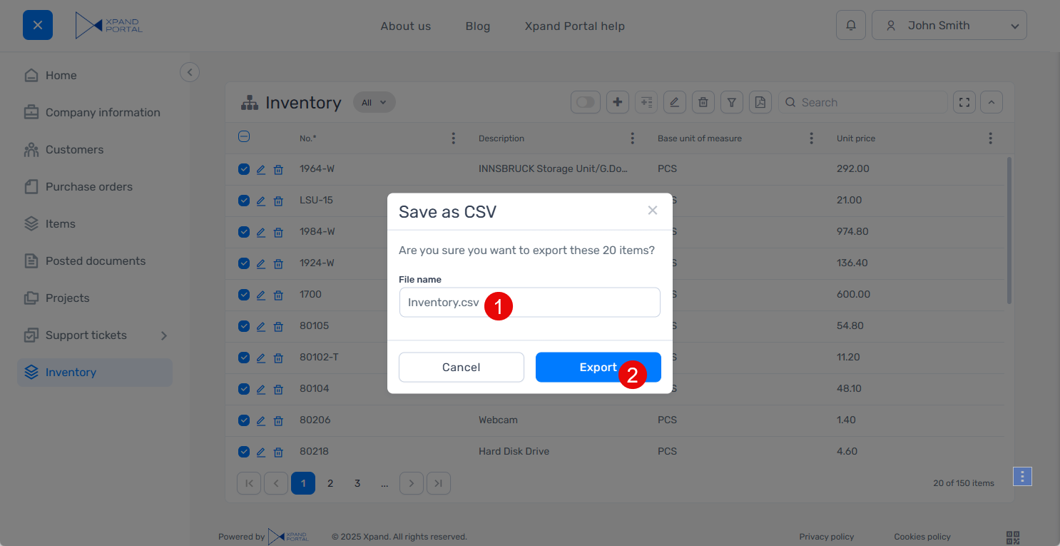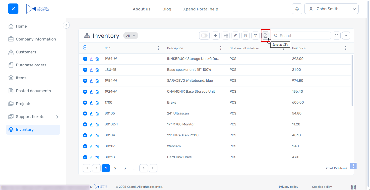 - Open a portal page the data from which you want to save as a CSV (comma-separated file).