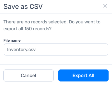 NoteIf you used the action while not having any particular records selected, select Export All in the dialog box that appears to export all records.