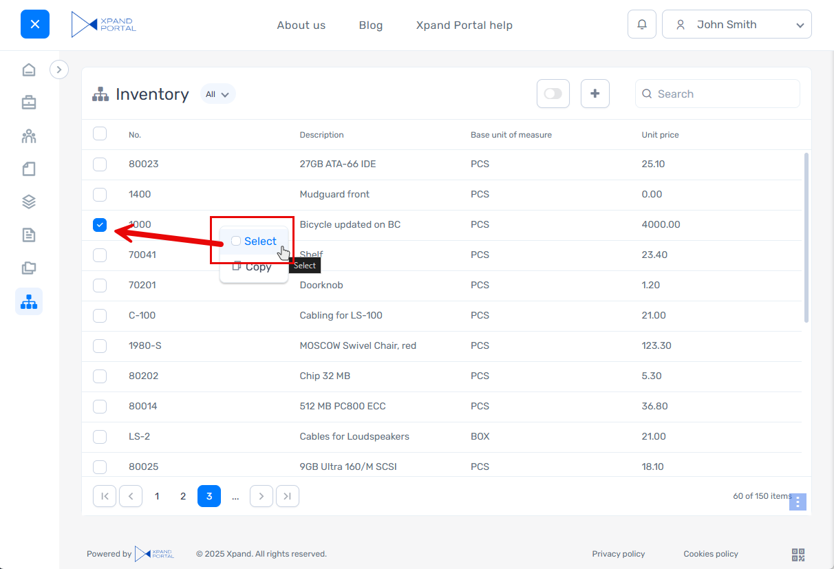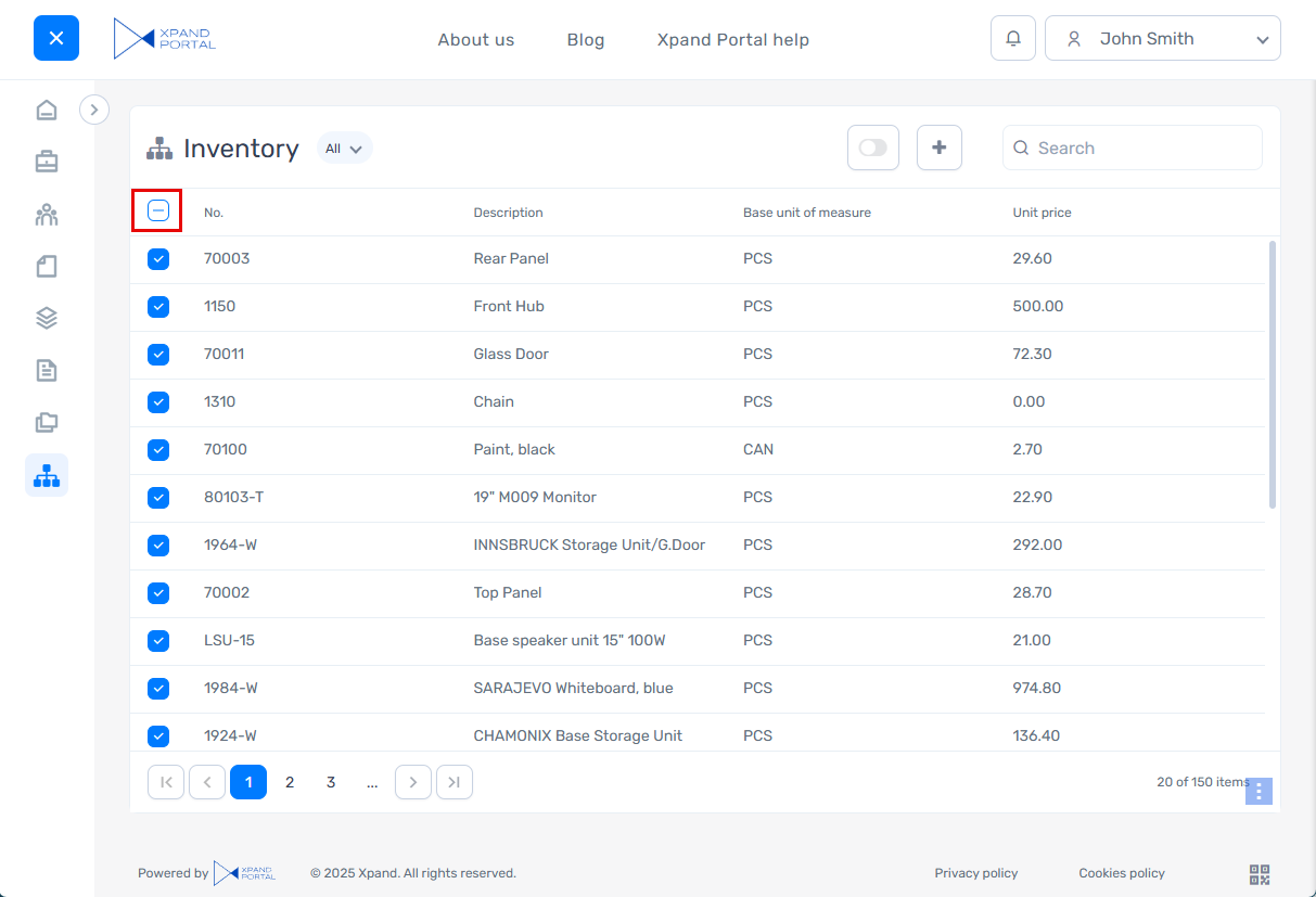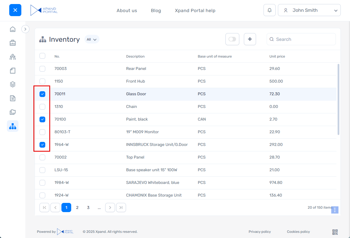 Portal members can select records on grid pages if the corresponding action is available for their member role. Selecting records may be necessary to be able to perform some operations with certain records.