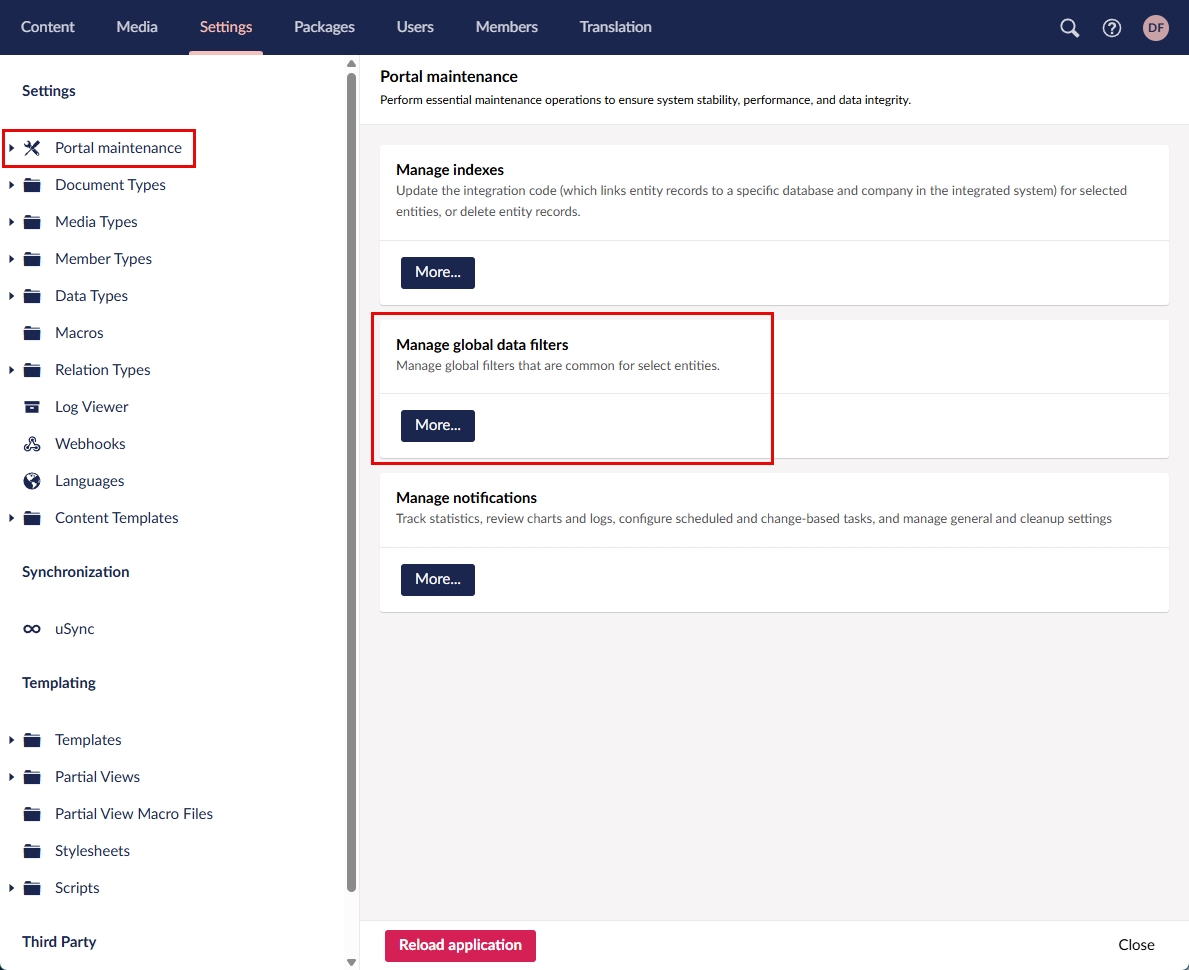 - In the portal backoffice, go to Settings > Portal Maintenance.