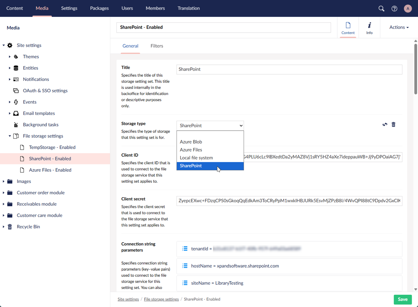 Out of the box, Xpand Portal provides integration with Azure Files, SharePoint, and Azure Blob, with the local file system available as an alternative storage option. The storage architecture is extensible, allowing additional file storage services to be added in the future if required.